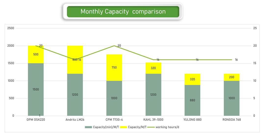 13. Monthly Capacity for our pellet mill is at least 30% higher than any other brands of pellet mill with sameoutput ofeletric motor (Energy is saved by 30%)